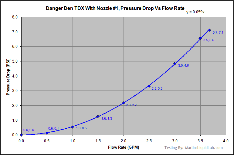 The DD TDX with Nozzle #1 has 7X Less restriction than a D-Tek Fuzion with 4.4mm nozzle and washer