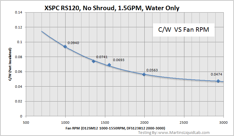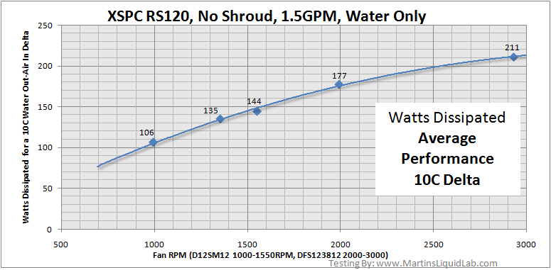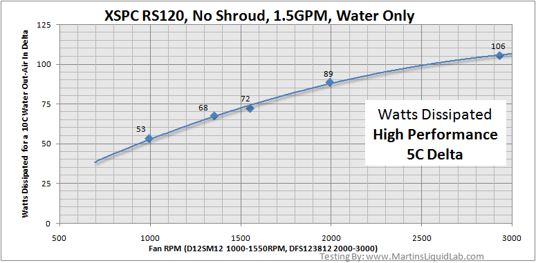 Also worthy of noting, like any radiator, there is a significant performance increase between the ultra slow and ultra high fans, in this case you literally double the performance using the high speed fans.