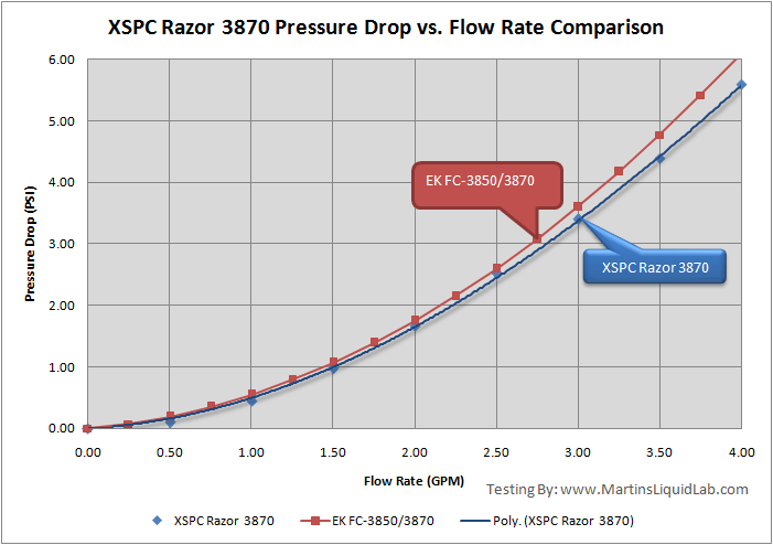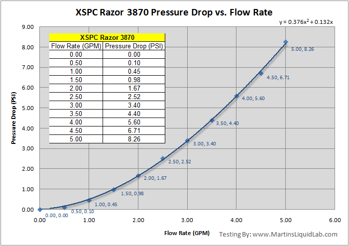Welcome to my pressure drop testing of the XSPC Razor 3870 block for a wide range of chipsets. This page will focus on the pressure drop and flow characteristics only for this water block only. First I would like to give special thanks to Paul from XSPC for providing me with a sample to test, I have yet to try and XSPC product that didn't impress me. Being the engineer that I am, I tend to take notice of the small tweaks here and there that make a product perform well, and XSPC obviously spends a lot of time working on improving their own designs and it shows.